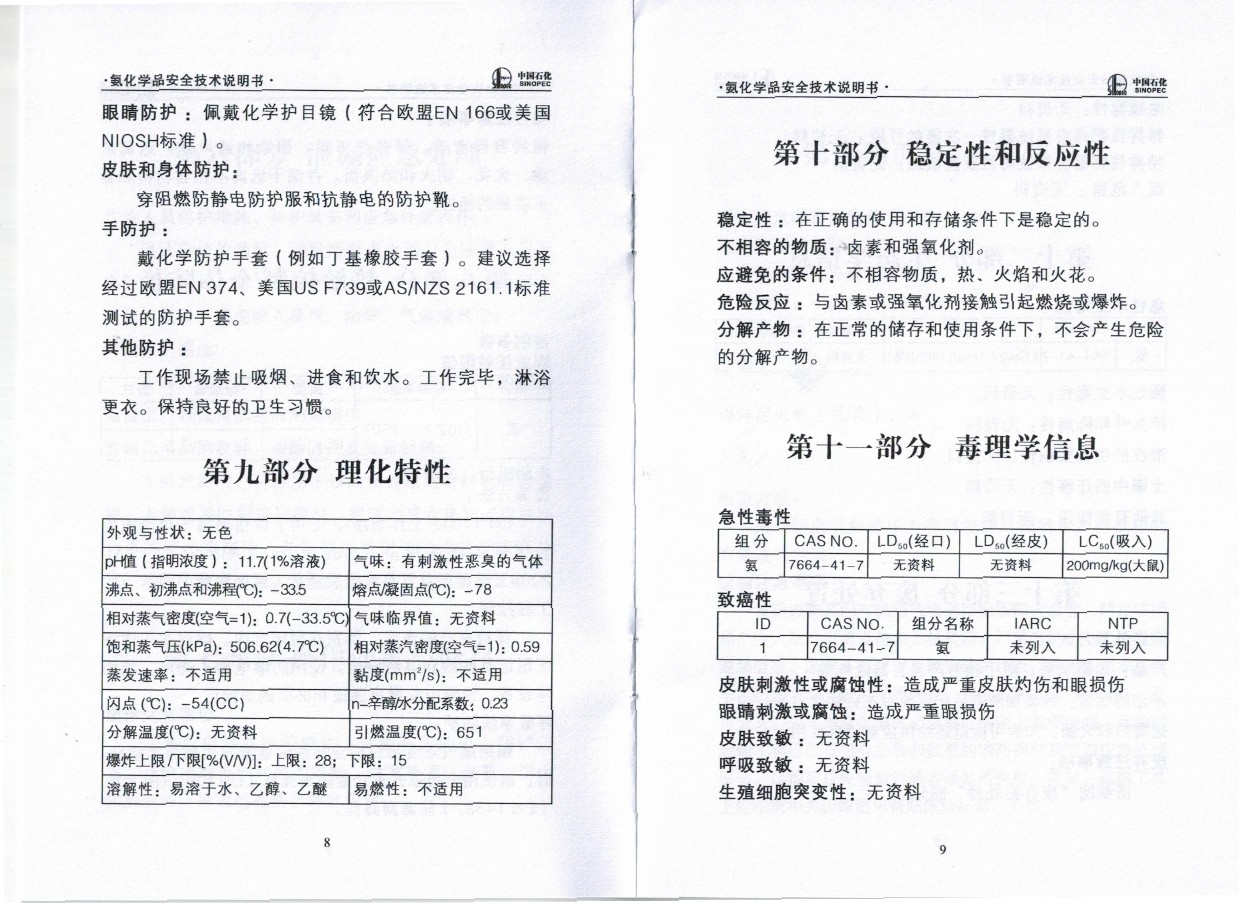 本產(chǎn)品為無色、有強(qiáng)烈刺激性氣味的液體,易溶于水,易揮發(fā),有毒,其氣體與空氣混合遇火發(fā)生爆炸;吸入過量氣體,會灼傷皮膚、眼睛、呼吸道粘膜,甚至窒息死亡。本產(chǎn)品廣泛用于化學(xué)、塑料、醫(yī)藥、國防等工業(yè)。液氨應(yīng)密封貯存,防爆曬,嚴(yán)禁接觸明火,操作人員應(yīng)戴防護(hù)用品